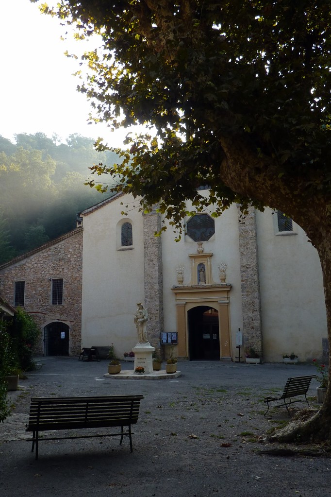 She told me a very interesting story about a recent date- September 8th.  This is the birthday of the Virgin Mary, and ever since the 17th century, up until more recent times- there was an annual pilgrimage à pied (on foot), from the city of Grasse to a nearby village called Valcluz- where there is a Catholic sanctuary dedicated to the Virgin Mary,  called the Sanctuaire Notre-Dame de Valcluse.  Back in the day, September 8th was a major holiday in Grasse, and all the perfume factories would close, and all the workers would hoist their respective flags representing their companies, and walk to Valcluse.  Part of the reason for the tradition of this pilgrimage, was to thank the Virgin Mary for her protection, since the Plague never touched Grasse.   I decided to go there this morning to see the place for myself…