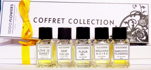 Hello everyone! I’d like to announce the new Coffret Collection from 1000 Flowers. As discovery sets are, this is a great way to explore the full collection, and includes one of each of the five fragrances.